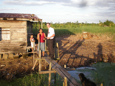 Op Eerste Kerstdag waren we in de regen naar een heel arm gebied. Het is daar heel modderig en mensen gooien overal hun uitwerpselen gewoon neer. We gingen daar bij een familie op bezoek en onze broek was zo smerig, dat ze wat regenwater aan ons gaven om onze broek schoon te wassen. Dat deden we met onze handen. Toen we binnenkwamen had de vrouw zoveel eten voor ons gezet, ik heb nog nooit zoveel gezien!! En dan te bedenken dat het één van de armste gezinnen is die ik ken. Het is een guyanese familie met 10 kids en alleen de man werkt als visserman. De kinderen keken ook naar het eten, dus ik dacht: Maar snel gaan eten. De vrouw zou echt beledigd zijn als we niet zouden eten. Toen ik begonnen was met eten voelde ik dat de Geest me vertelde dat ik echt m'n handen moest wassen!! Dat was ik dus vergeten!! Maar de mensen hadden geen stromend water daar in huis, dus ik dacht: Snel eten en niet ziek worden! Maar ja........ zo gebeurde het niet. Als je niet luistert, heb je geen bescherming.